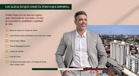 O lançamento Residencial Itália Finale chega para redefinir o conceito de morar bem em Araçatuba. Localizado entre a Avenida Pompeu de Toledo e a Rua Cristiano Olsen, o empreendimento oferece fácil acesso à Rodovia Marechal Rondon, além de estar a poucos minutos do Shopping Praça Nova, Supermercado Muffato e centro da cidade.