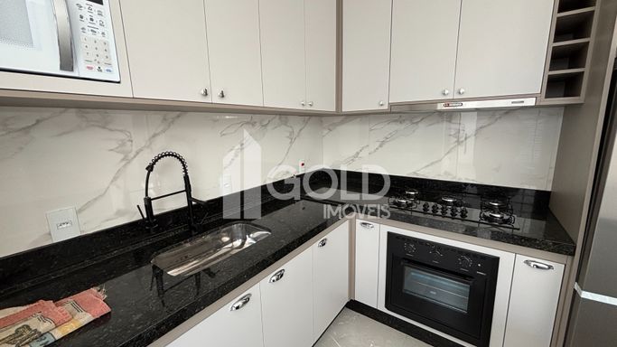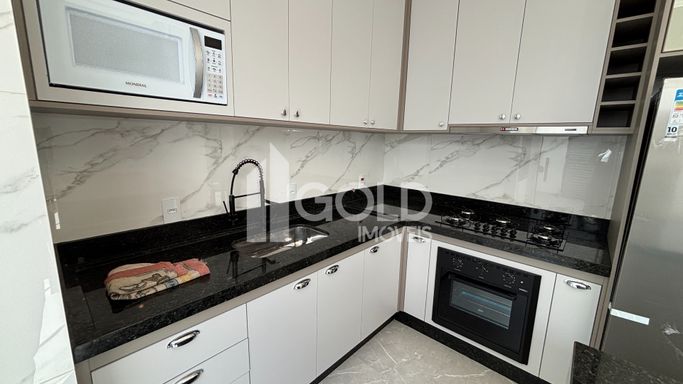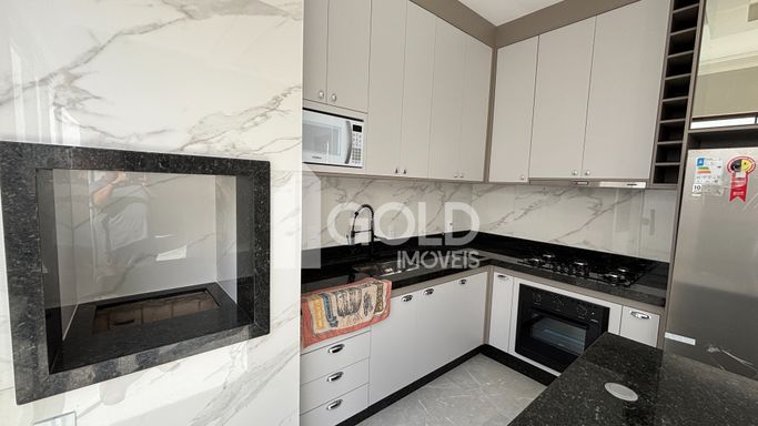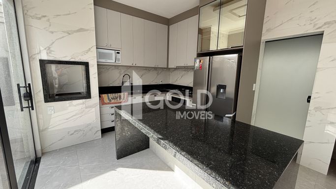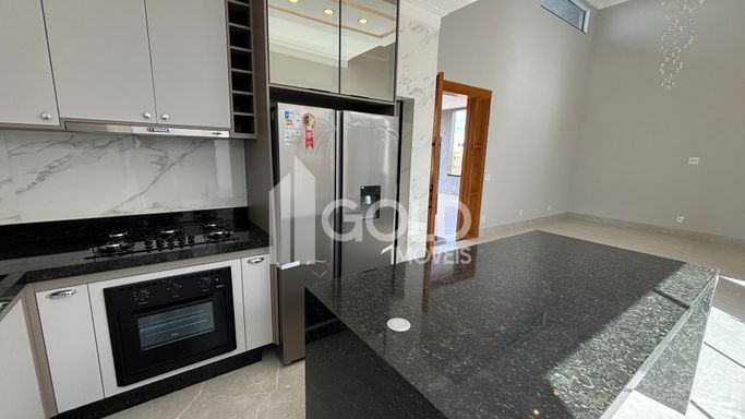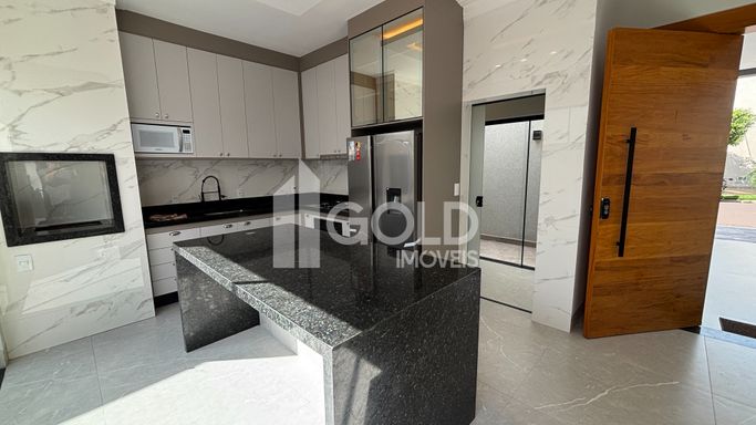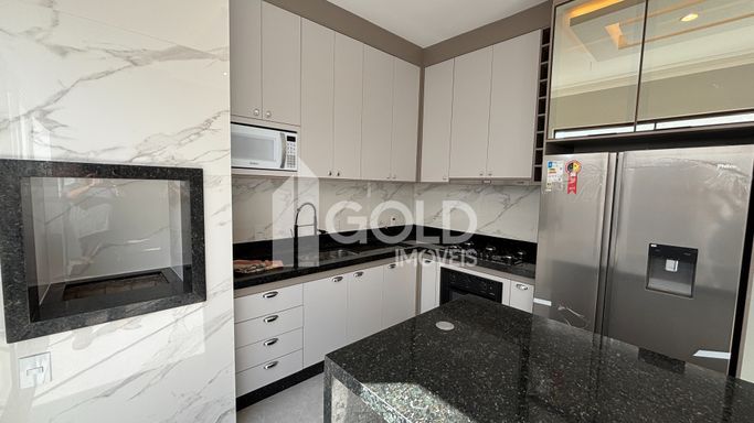 Cozinha Gourmet com Ilha, Armários Planejados, CookTop, Geladeira, Microondas.