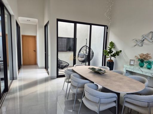 Com 210m² de construção em um terreno de 347m², o imóvel possui 3 suítes, sendo a master com closet, além de salas amplas de estar e jantar, lavabo e um charmoso jardim de inverno que valoriza a iluminação natural. A cozinha com planejados e ilha complementa o projeto moderno e funcional.